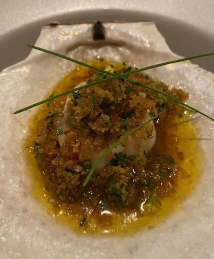 Roasted scallops on the shell, lemon, garlic, parsley and Friulano wine