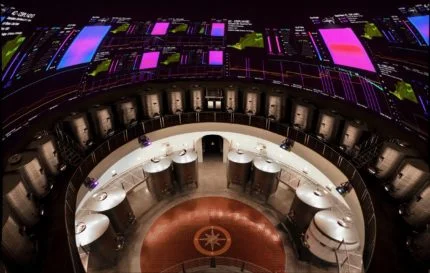 And then we have to talk about the technology. This is pure Star Wars Intergalactic looking next-generation stuff that usually you don’t find in a winery. This is known as FILCS (“Felix”), Christian’s brainchild, who is a former computer engineer. FILCS works along a fermentation dome, lined with 24 fermentation tanks that can accommodate grapes from individual vineyards across the estate. Shawn showed projections on the walls that showed the results from algorithmic fermentation-control and -monitoring system for each tank projecting the data from the process. It’s pretty awe inspiring for the wine business.