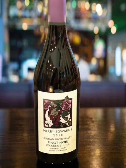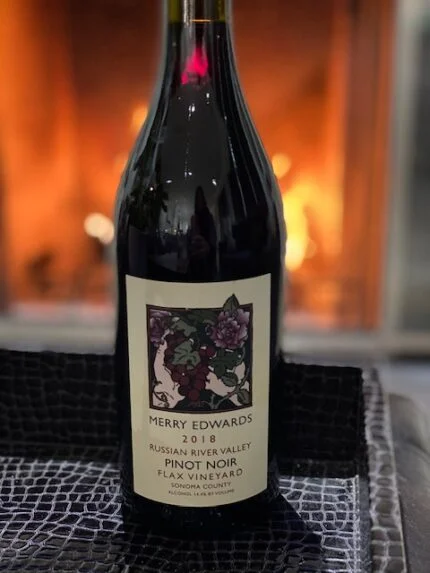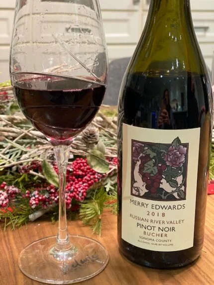 2018 Merry Edwards Sonoma Coast Pinot Noir – lots of strawberry, dark cherry, herbs, flowers, spice and rose petals make this a juicy wine that will keep you sipping.